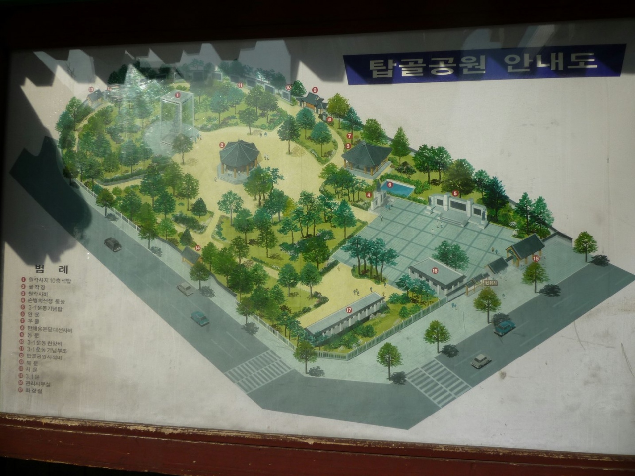 仁寺洞の通りの南端辺りにある公園です。2月でしたが比較的暖かい日でしたので市民の方が散歩している姿も見られ、憩いの場所のようですが、歴史的には日本支配からの独立運動の始まりの地でもあったようです。