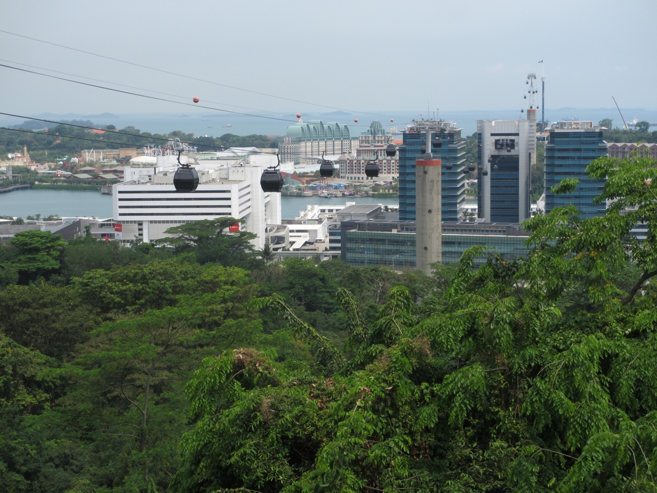 シンガポール最大の観光地セントーサ島へはケーブルカーで向かうこともできます。出発駅は、戦時中、最終激戦地であった高台、マウントフェーバーになります。約10分ほどの空中散歩になりますが、海面から50mほどの高いところを渡っていくため、ちょっと怖さがありますが展望は最高です。マウントフェーバーへは車やタクシーの利用が便利です。