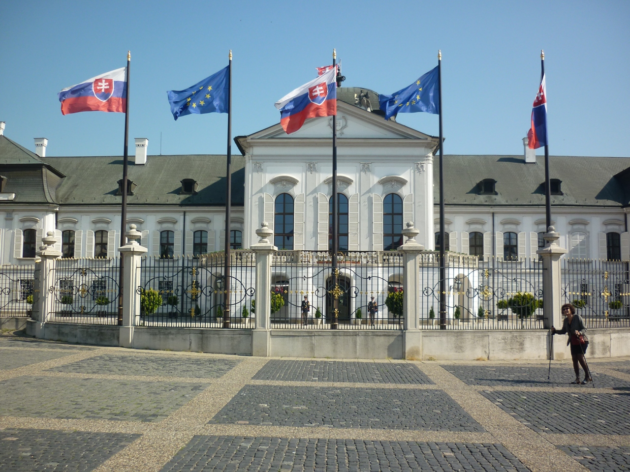 プラチスラヴァ中央駅から旧市街に行く道の左側にあります。綺麗な建物なので、最初は宮殿なのかと思ったら、警護の兵隊が歩哨についていました。元々はマリア・テレジアの側近の貴族の邸宅だったそうです。中には入れないようです。