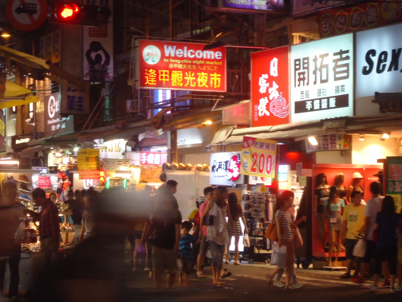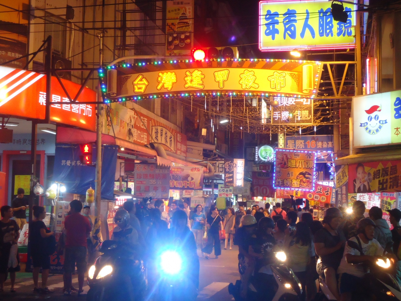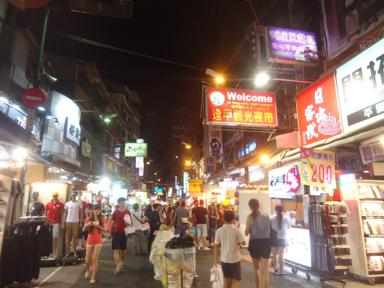 台中駅、台中中心部から比較的離れているので路線バスまたはタクシー利用になります。逢甲大学を中心に様々なお店、屋台が続いています。一番盛り上がるのは23時頃と聞きましたが、その前の時間も後の時間も活気は変わらなかったような。