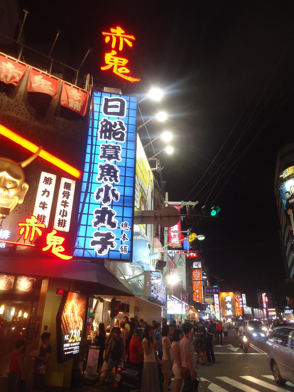 飲食店も多く、たこ焼き(関西人には違和感があるが)の有名店の本店や大腸ドッグ(ソーセージドッグ)の店等行列店もありますが、士林夜市等に比べ「これは絶対」という店は無く、食を目当てにする人は今ひとつと感じるかも。