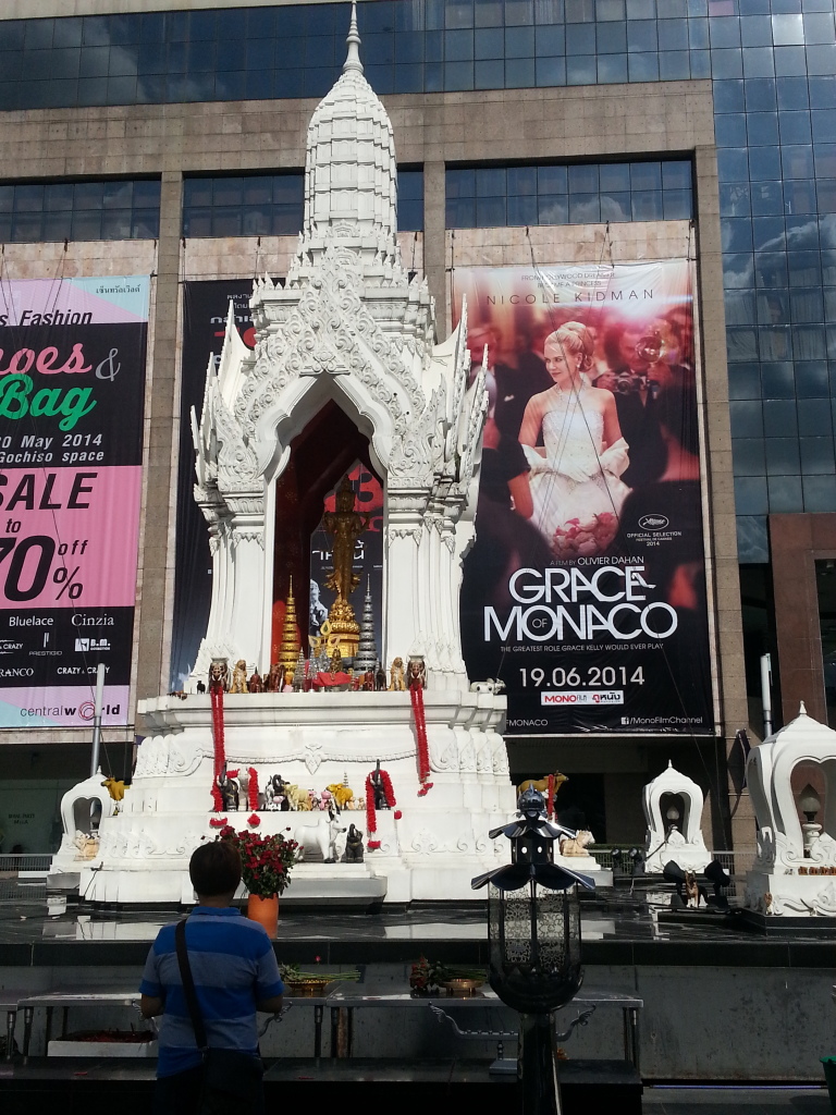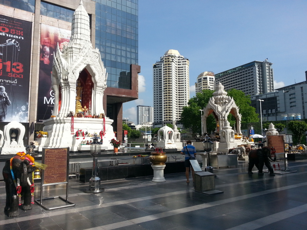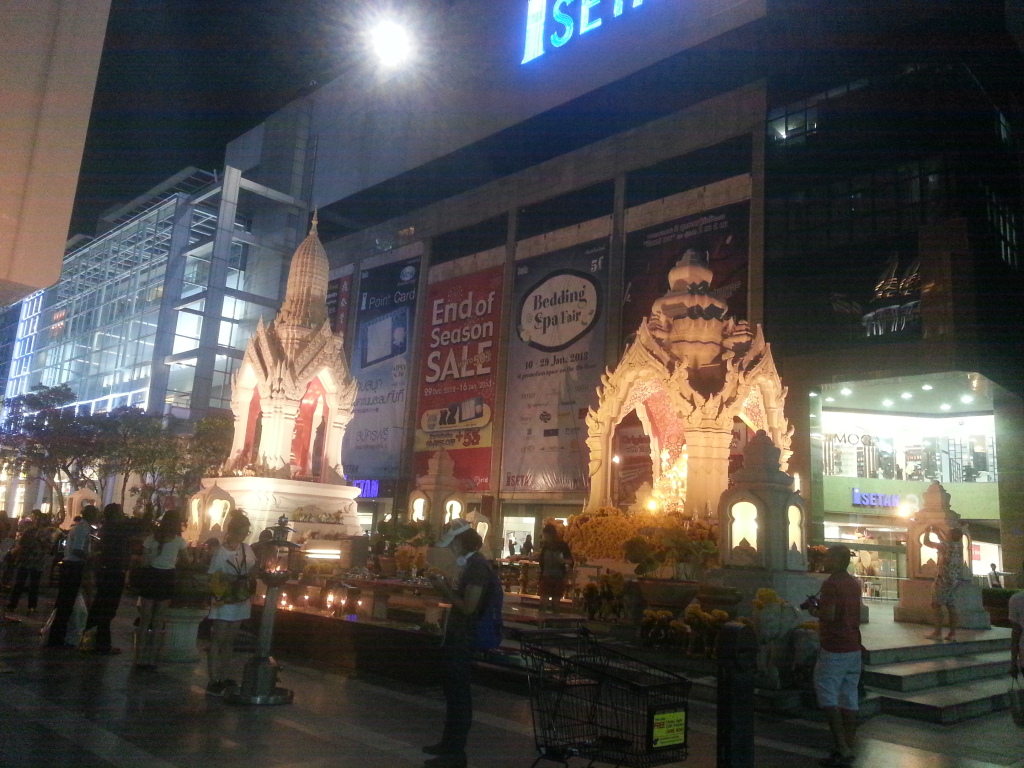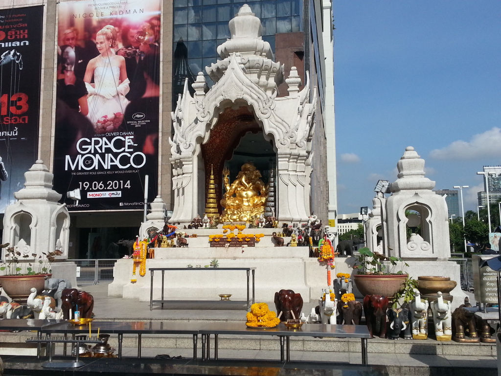 恋愛成就のトリムルティの祠と商売繁盛のガネーシャの祠。大型ショッピングセンターの前だし、いつも沢山の人がいます。夜はライトアップされて綺麗です。