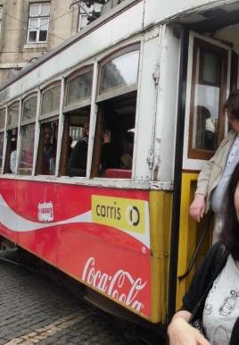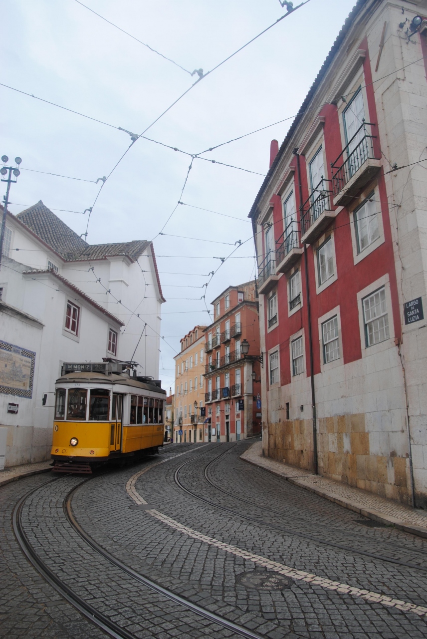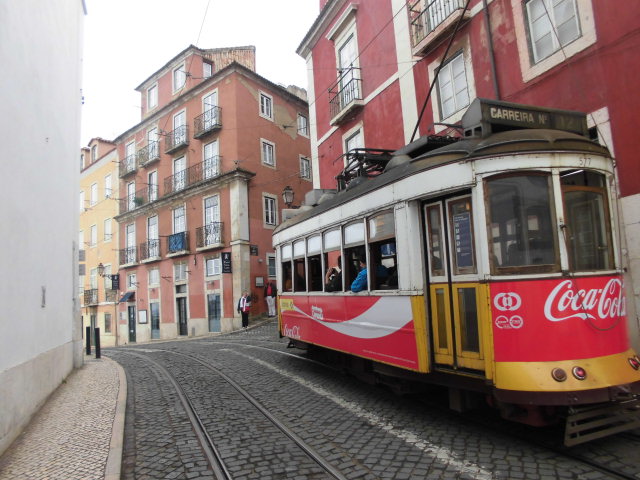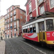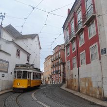 古い町並みの曲がりくねった急坂を古いタイプのトラムがガンガン登っていく姿はリスボンでしかみられません。