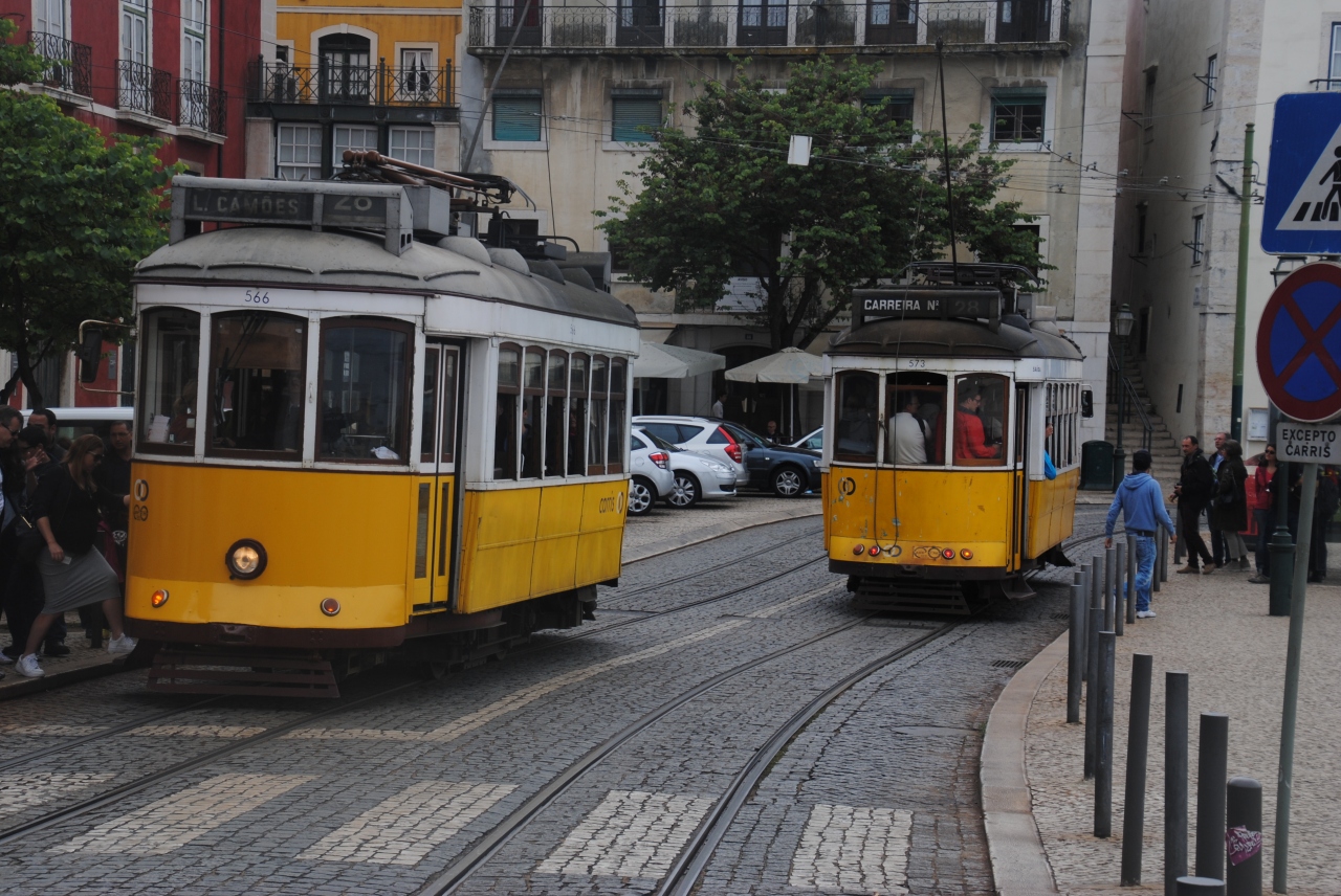 旧市街の曲がりくねった急坂を上り下りする旧車両の光景はリスボンならではのものです。