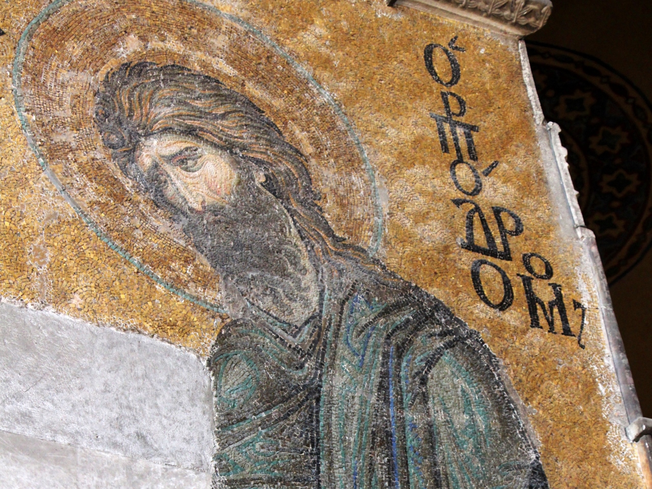 モザイク画のキリストとマリアの表情は優しげなのだが、注目すべきは右側のヨハネ。