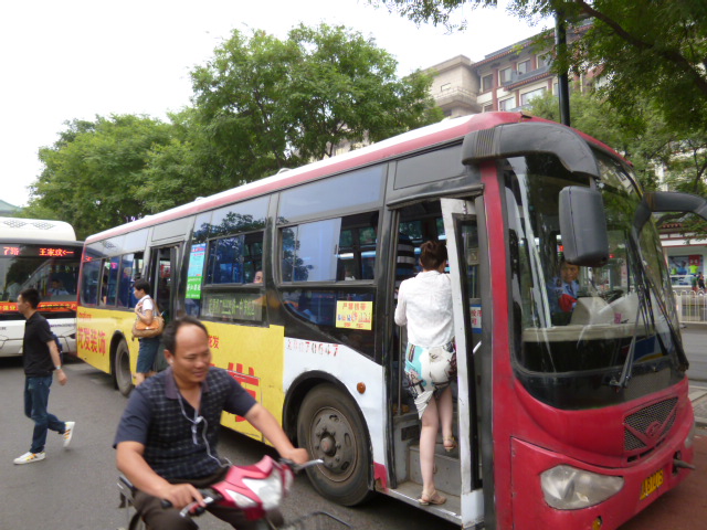 西安市内を縦横に走るバス路線は、観光客が利用する市内中心部ではエアコンの無いタイプの車両が1元、エアコンのあるタイプで2元が基本のようです。前から乗りドライバーの横の料金箱に運賃を投入、降りる際には後方の扉からとなります。但し車掌のいる車両では料金は目的地ごと異なりますのでご注意を。