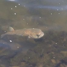 ティラピアがウヨウヨいます。サヨリやオジサンのような魚、大きいハコフグもいました。