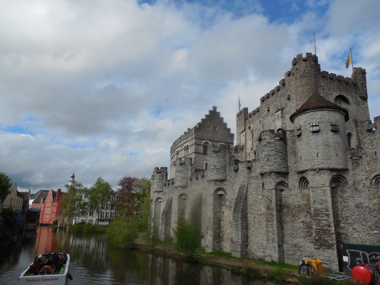 バイキングの侵入に対抗するために、848年頃にボードワン伯爵が建てた城砦が起源で、1180年フランドル伯フィリップ・ダルザスが再建したものでシリアにある十字軍の要塞をモデルにしたそうです。当時の武器や拷問器具が展示されてありました。