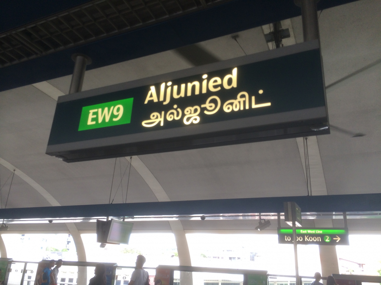 島式のホームが1面で、2つの線路がある、MRT東西線の高架駅です。