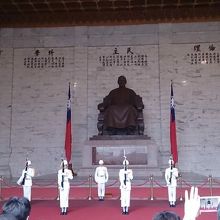 観光で必ず立ち寄る場所です。紀念堂の中には蒋介石の像があって1時間ごとに兵隊さんの交代があります。この時間になるとすごく混んでます。