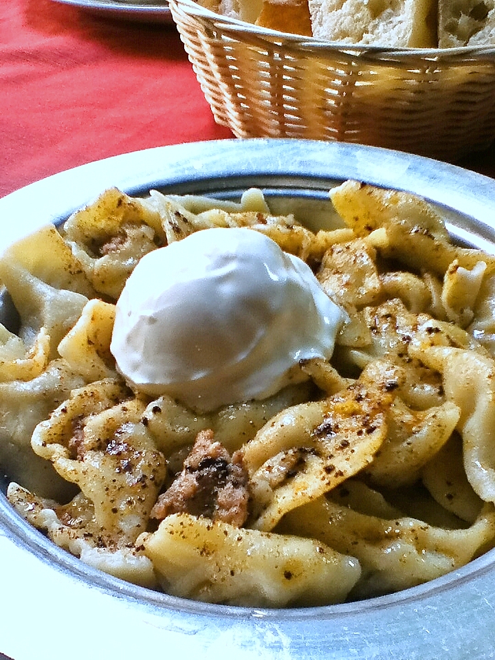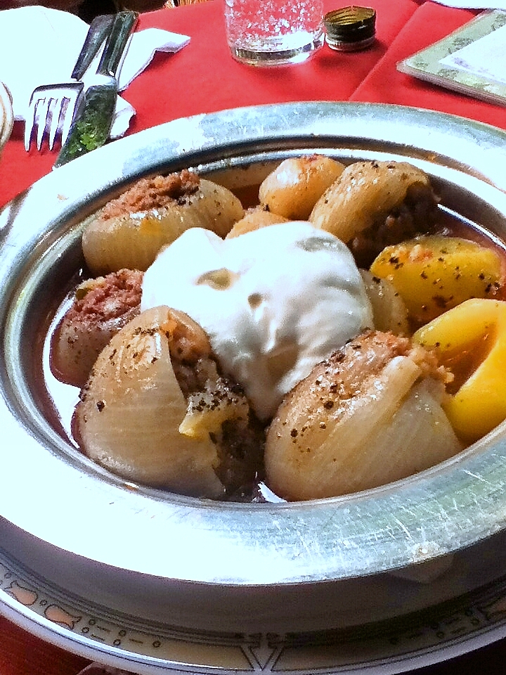観光名所バシュチャルシヤ内にあるボスニア料理のレストラン。天気がよい時には中庭のテラス席に座る人の方が圧倒的に多いです。私達は2人でソガンドルマ(たまねぎの挽肉詰め)とクレーペ(ボスニア風ラビオリ)を注文しシェアしましたが、クレーペは少し油っこかったかな。クレーペには刻んだニンニクが添えられることが多いのですが、食後の口の匂いが気になる方はニンニク抜きにしてもらう事もできます。