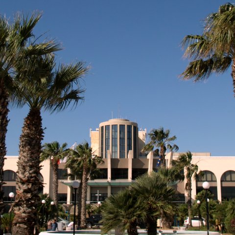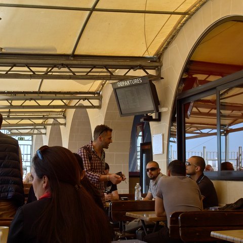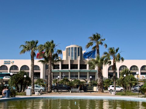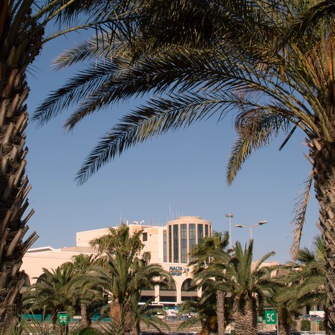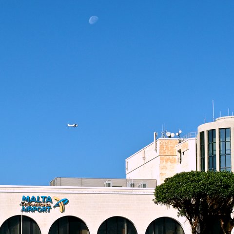 マルタを旅して、市内からバスで空港に着いた。到着した時には気付かなかったが、バス停からターミナルに向かう途中、飛び込んできた空港の外観に思わず足を止めた。こんなかわいいイラスト看板がある空港は他にあるだろうか。ヤシの木もマッチして、空も青く、白い月も見えて、実に面白い画となった。ウキウキした気分でシャッターを押し、帰りたくなーい!と叫んでしまった。