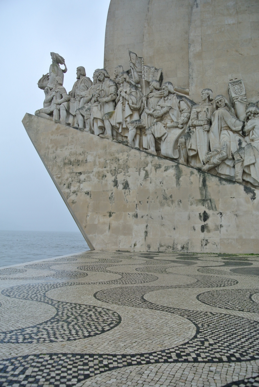 テージョ川岸に存在感のあるモニュメント。ジェロニモス修道院から地下道を通って行けます。青空なら絶好の写真スポットですが訪れた日は生憎の雨。しかも風がきつくて写真撮るのも四苦八苦。それでも観光客は多かったです。