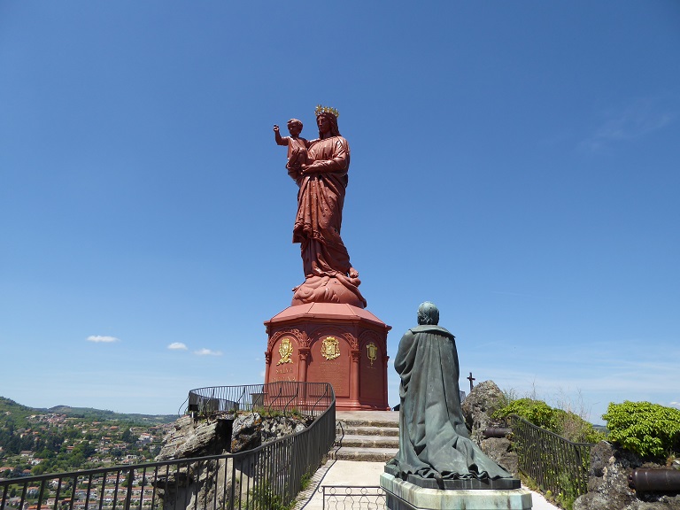 コルネイユ岩山、ノートルダム・ド・フランスの聖母子像が立つ、ちなみにこの像は高さが16m、列車でル・ピュイの町に入ってくるとすぐに目に入る。