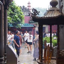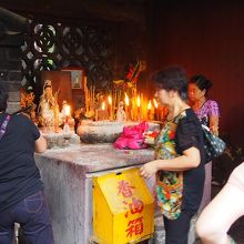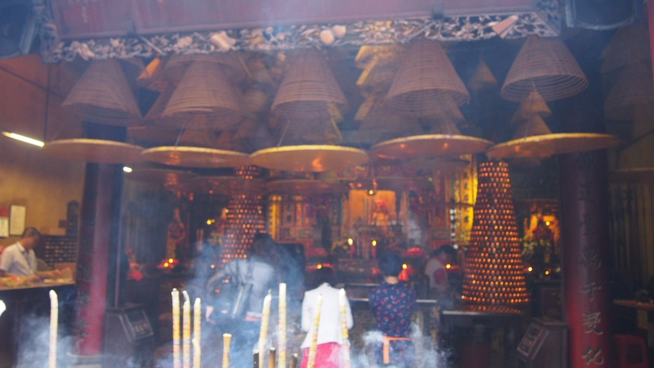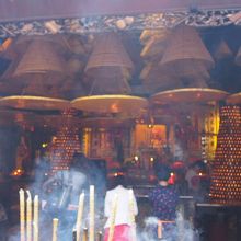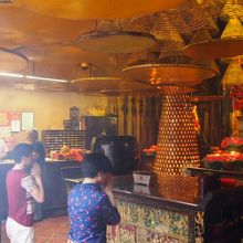 中も同じく大混雑、お線香の煙で濛々としていますが、係のおばさんがお線香を次から次へと引き抜き、焼却炉へポイ。