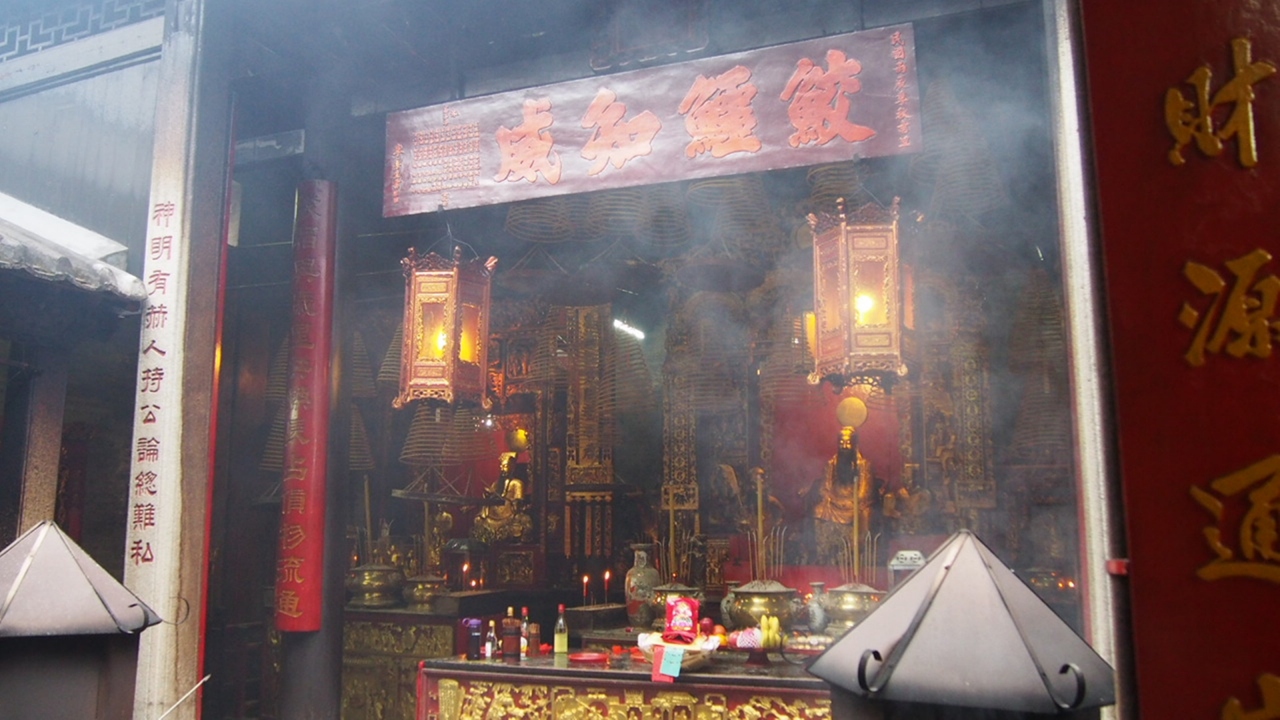 大賑わいの広場から一歩入った小さな廟