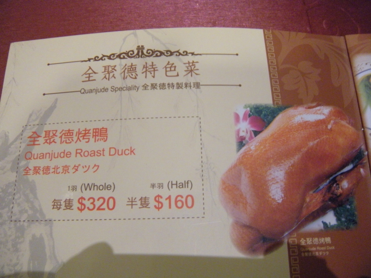 今回の目的の北京ダック、フカひれ、ツバメの巣を