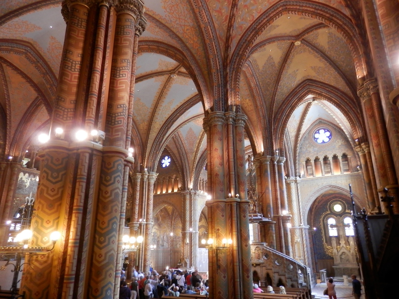 高い尖塔が目立ち屋根がかわいいのですぐにわかります。でもチケット売り場が広場にあるのでわかりにくいです。魚夫の砦のチケット売り場と一緒になっています。ステンドグラスや主祭壇などみどころたくさんです。あとここに王冠のレプリカがありますが、国会にある本物とはずいぶん違いました。