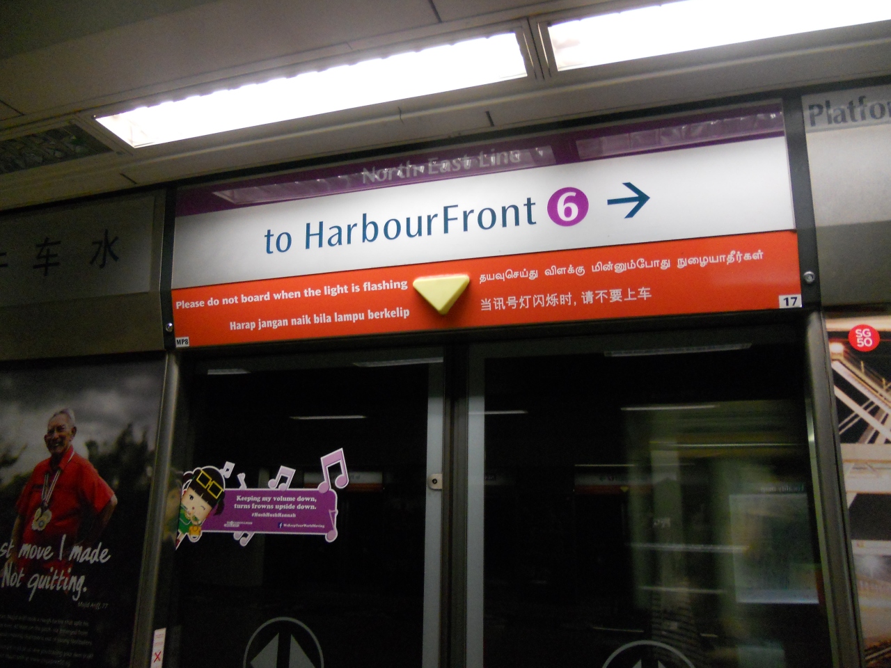 MRTの「東北線」と「サークル線」の2つの路線が利用でき、「セントーサ・エクスプレス」はこちらの駅から「セントーサ・ステーション」駅に移動して乗り換えとなります。駅の真上に「ビボ・シティ」というショッピングモールがあり、「フード・リパブリック」もありました。「ビボ・シティ」の「セントーサ・ステーション」駅があるフロアからは外に出ることができます。とても眺めがいいのでセントーサ島に行かれない方も是非立ち寄ってみてください。