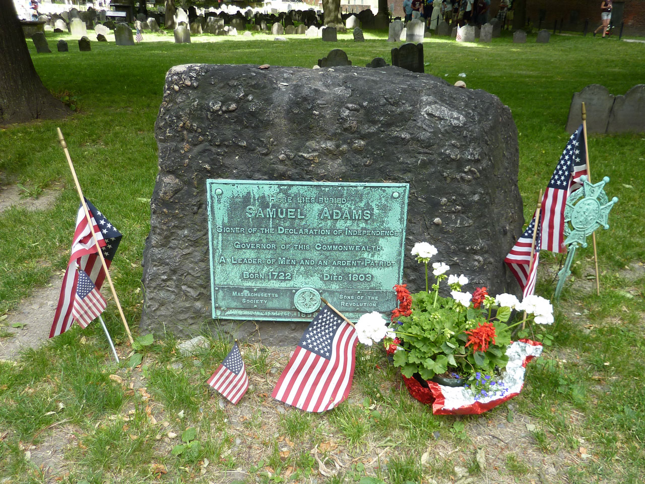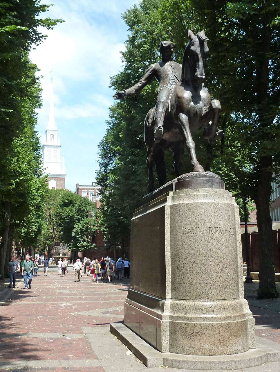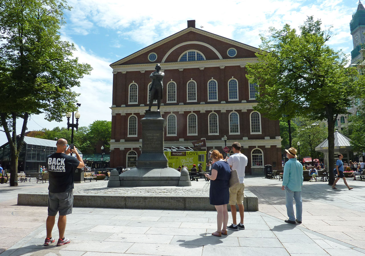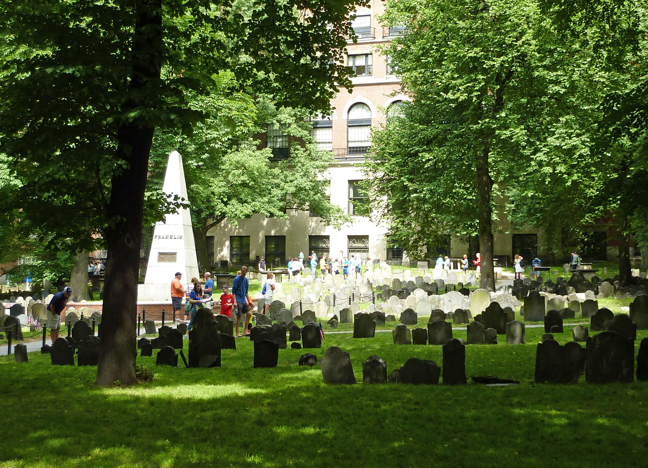 街の中心部からおよそ4キロも続くという独立戦争の史跡をたどるトレイル(地面に赤い線が記してある)をガイドブックを携えて巡りました。私には歩くにはたいへんな距離なのでレンタサイクルで巡りました 。でも、もちろん混雑している場所では自転車を 降りて押して進みましたよ。 そのため最終目的地のバンカーヒル記念塔からの帰り道は あまり疲れることなくスムーズでした。