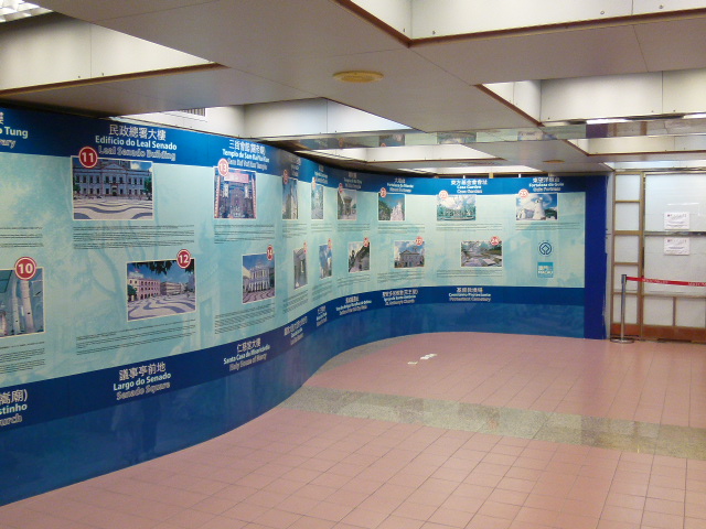 今日はマカオの数多くある世界遺産散策です。スタートは、まずその中心地とも言えるセナド広場でしょうね。そして「インフォメーションカウンター」は広場の西側にあります。日本同様にマップなどをゲット、日本語じゃなくても漢字表記で十分わかりますね。また、館内では世界遺産を紹介したパネルも展示されています。ご活用くださいね。