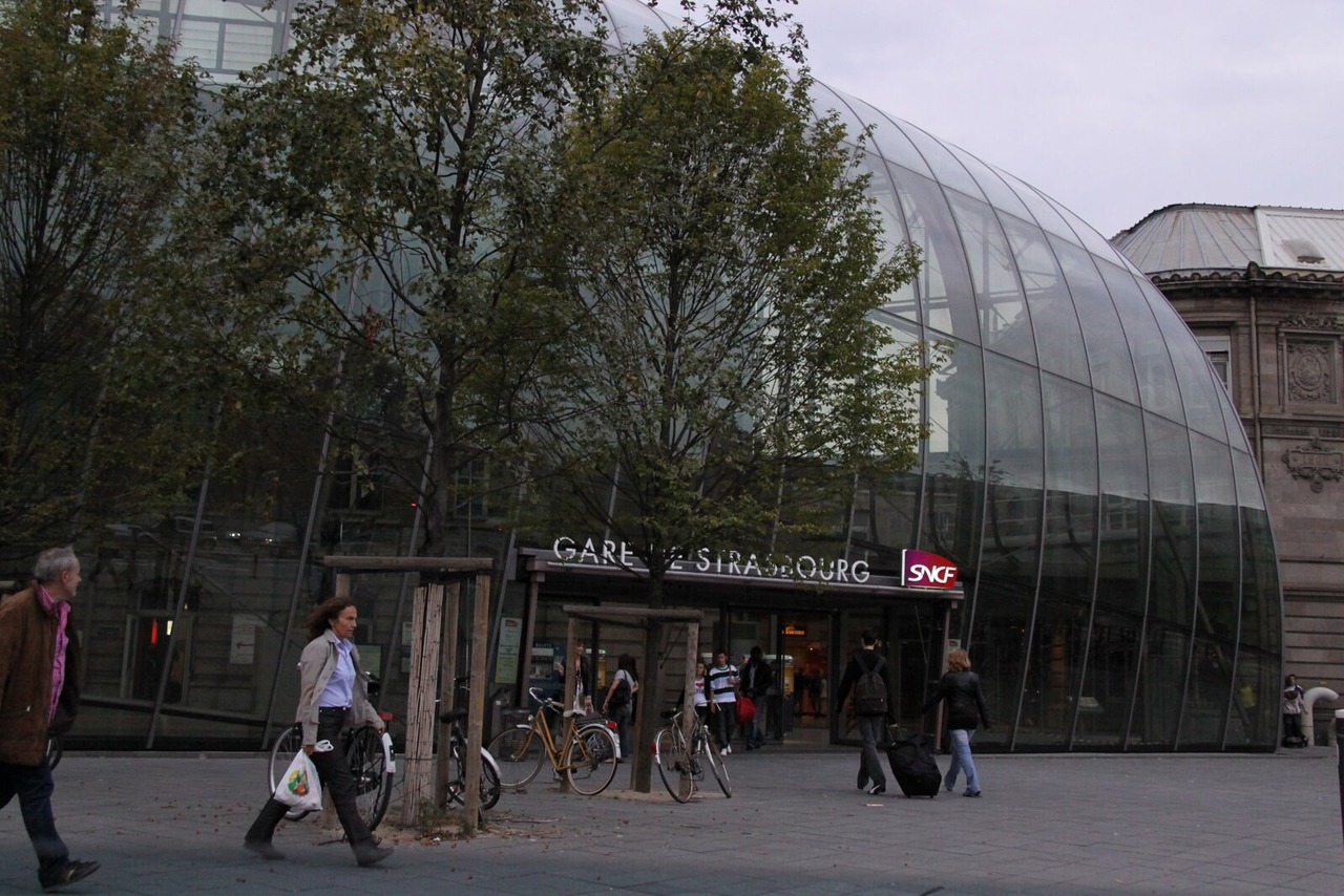 パリやドイツからのtgv等主要列車が発着。駅舎のデザインは旧駅舎をガラスでかこったもので、デザイン先進国かつ旧来のもの尊重しているフランスらしい。tgv東ヨーロッパ線の開通時に街の中心へもちかく、トラムも乗り入れ、便利。