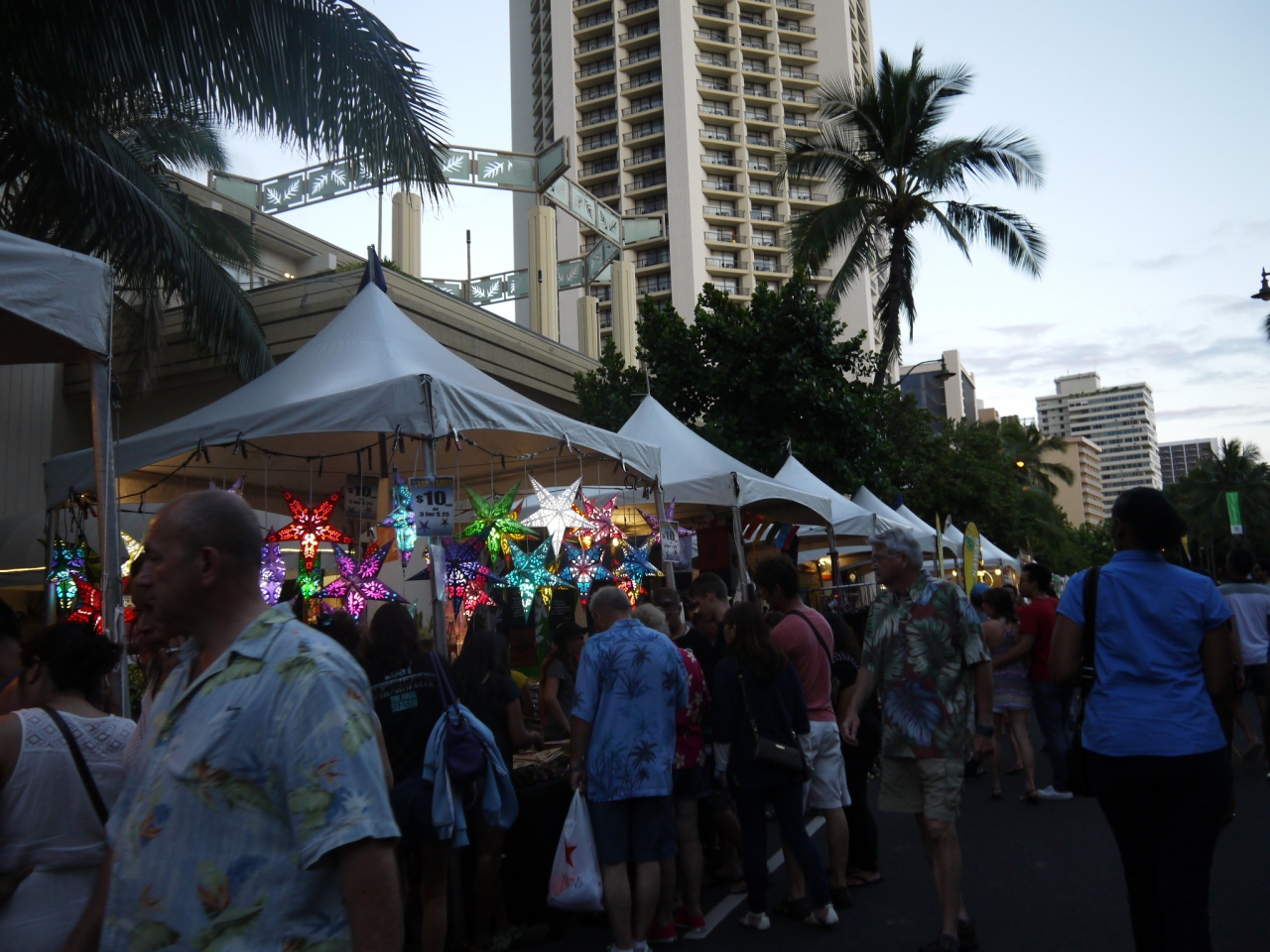 訪問時にはアロハフェスティバルが行われていて、カラカウア通りの一部が歩行者天国になり、露店やミニコンサート等が催され一層賑やかでした。