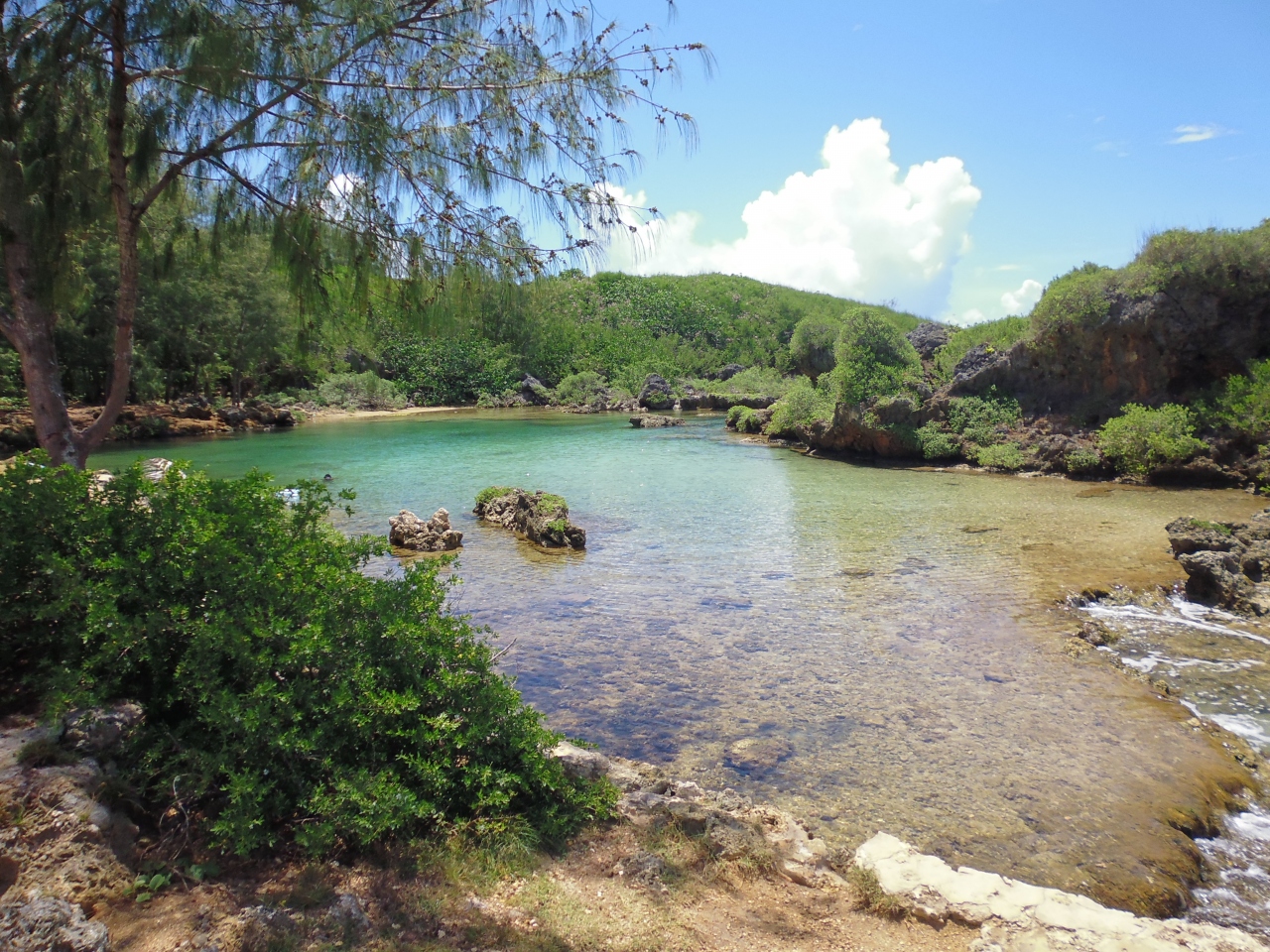 2015年6月に行きました。レンタカーであったため、問題なく行けました。行くまでは、着いたら一泳ぎ!と思っていましたが、想像していたのとはあまりにかけ離れた光景であったため、見学だけとどめました。遊んでいたのは、ローカルのファミリー2組だけでしたが、海に向かって左側(北側)の方が綺麗な感じがします。ちなみに、飛び込み台は板がなくなっており、全体的に朽ち果てた公園といった雰囲気でした。
