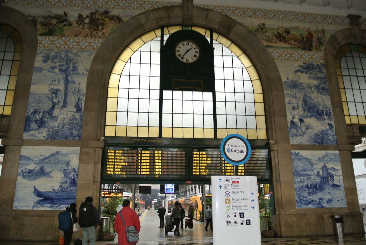 リスボンから乗り換えないといけないので少し不便ですが電車でポルトに入ると見事なアズレージョが出迎えてくれます。こんな贅沢な駅を今も普通に使っているポルトの人々がうらやましいです。思ったより小さな駅ですがまるで美術館のように素敵な建物でした。