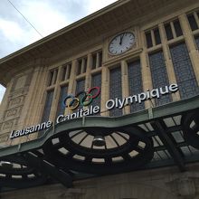 駅舎にもオリンピックのマークがあります。