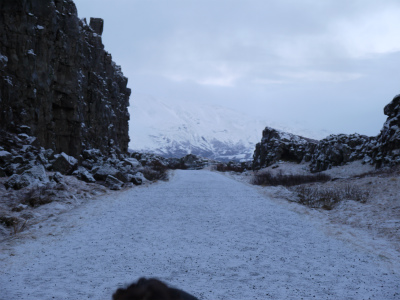 ゴールデンサークルツアーの目玉の観光地です。ツアーバスで訪れました。レイキャビックの市街地から1~2時間ほど走ったあたりです。荒涼地帯といえばそれまでですが、ガイドさんの説明でアメリカとヨーロッパの二大陸のプレートのぶつかる地帯だとの前置きがあってからの上陸でしたので、とても雄大な気持ちにさせられました。