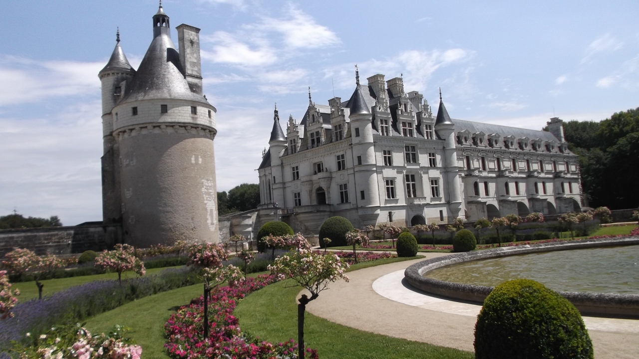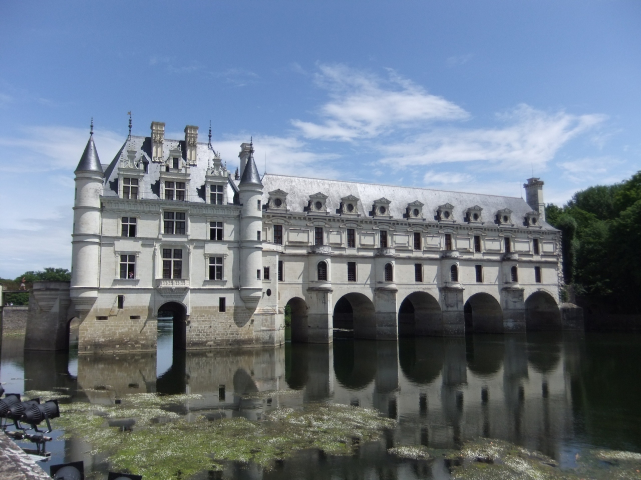 シェール川をまたいで建てられた、白亜の城です。 川に浮かんでいるように、見えます。