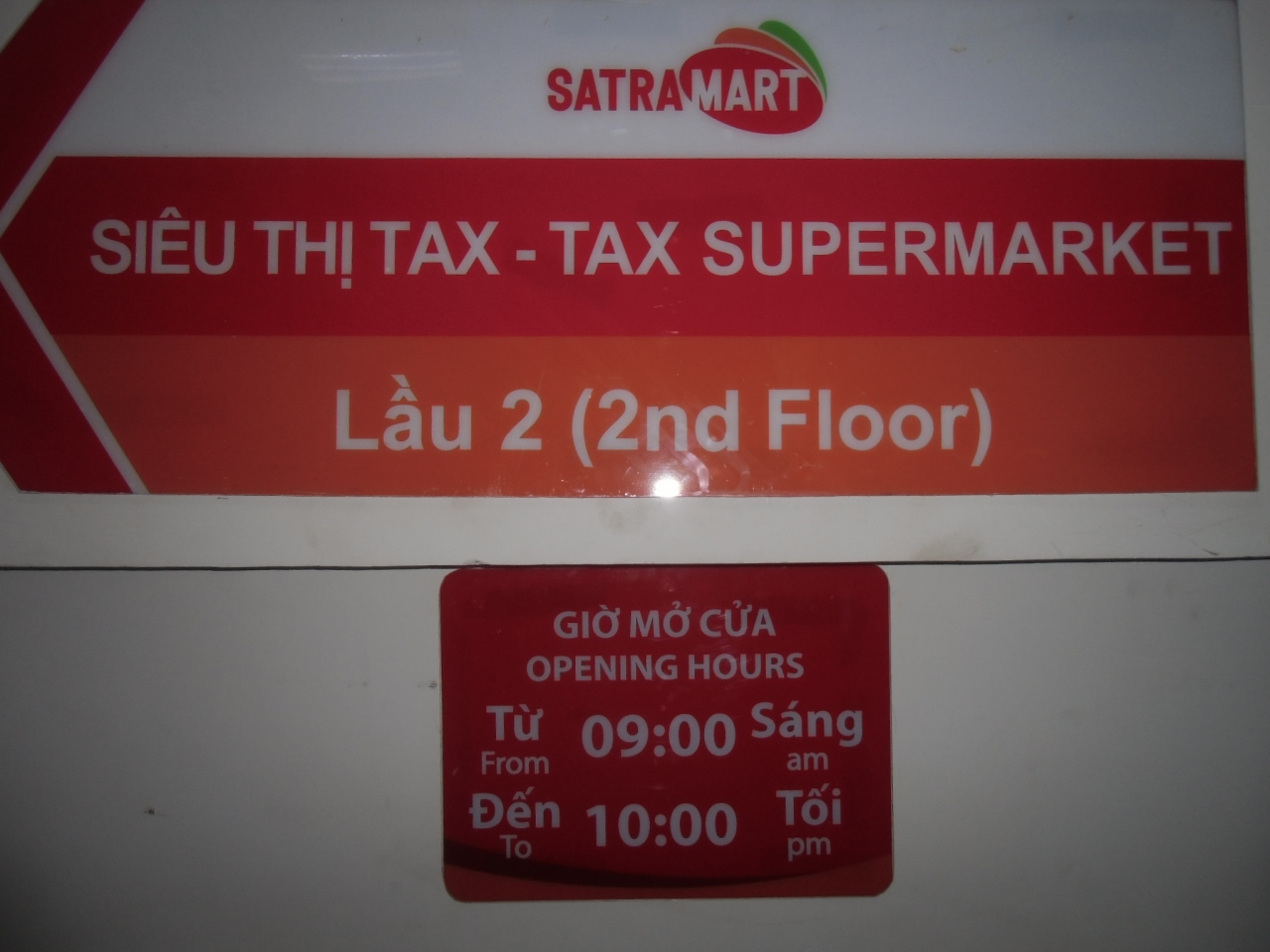ドンコイ通りとグエンフエ通りの両側からラッキープラザという建物に入ることができます。その中の3階(案内表示は2階とありますが、これは日本では3階になります)に、お土産物から日用品まで品揃え豊富なスーパーがあります。ドンコイ通り周辺には3軒のスーパーがありますが、いろいろな同じ商品で価格比較をしたら、ここが一番安かったです。商品もきれいに並べられており、お土産用のチョコレート、ハス茶、置物、マスクなどもあり大変便利です。手荷物はスーパー入口の鍵付きロッカーに入れてから入ります。