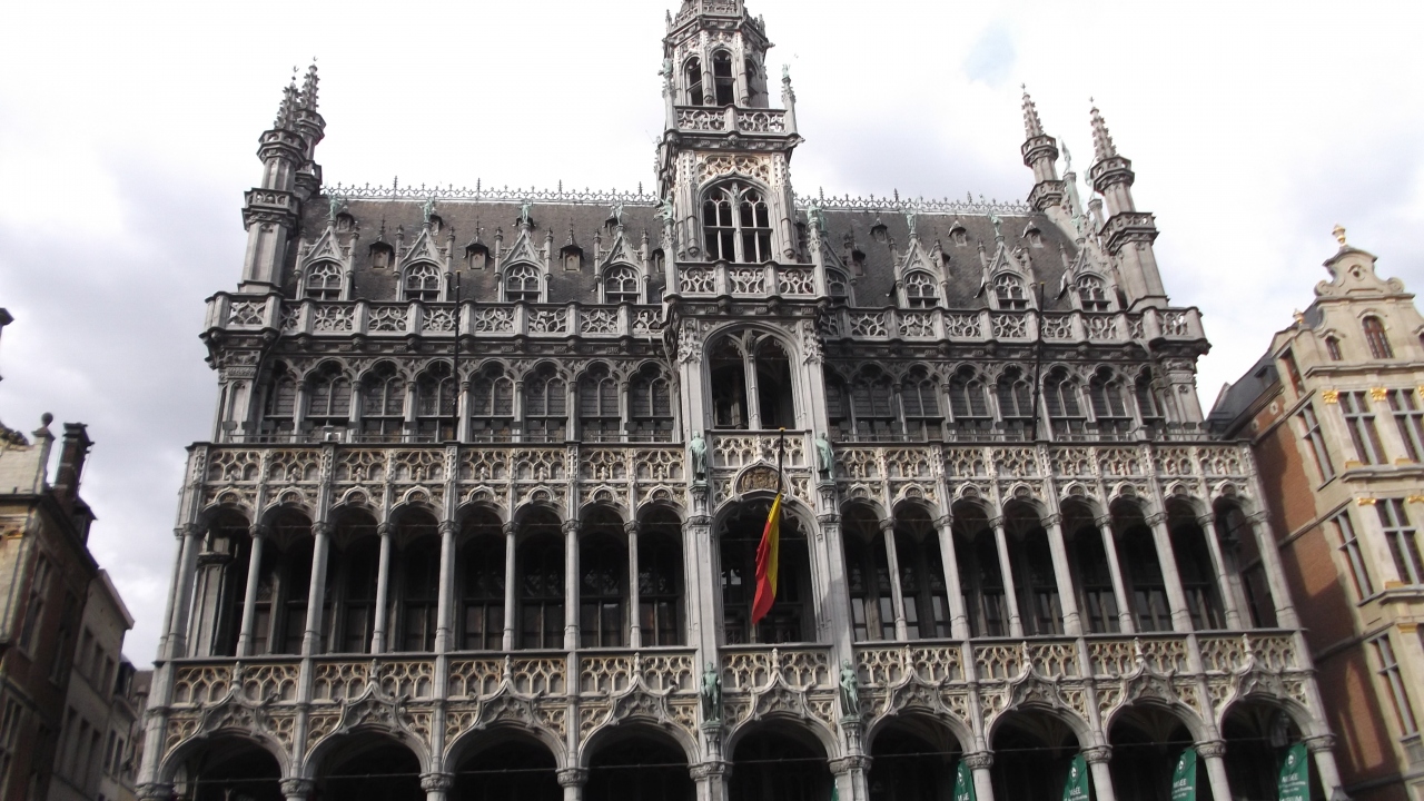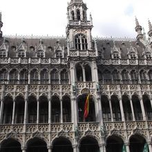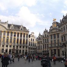 広場には、市庁舎、王の家、ブラバン伯爵の館など、華麗な建物が四方に立ち並んでいます。 ギルドハウスは、修復中で、覆いがかぶせてあって、そこに絵が描いてありました。 現在は、これらの建物は、カフェや、レストランになっています。 又、有名なチョコレート屋さんもいくつかあります。