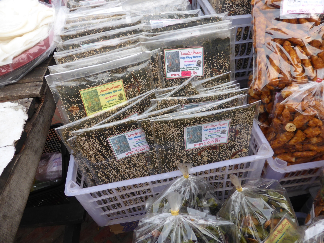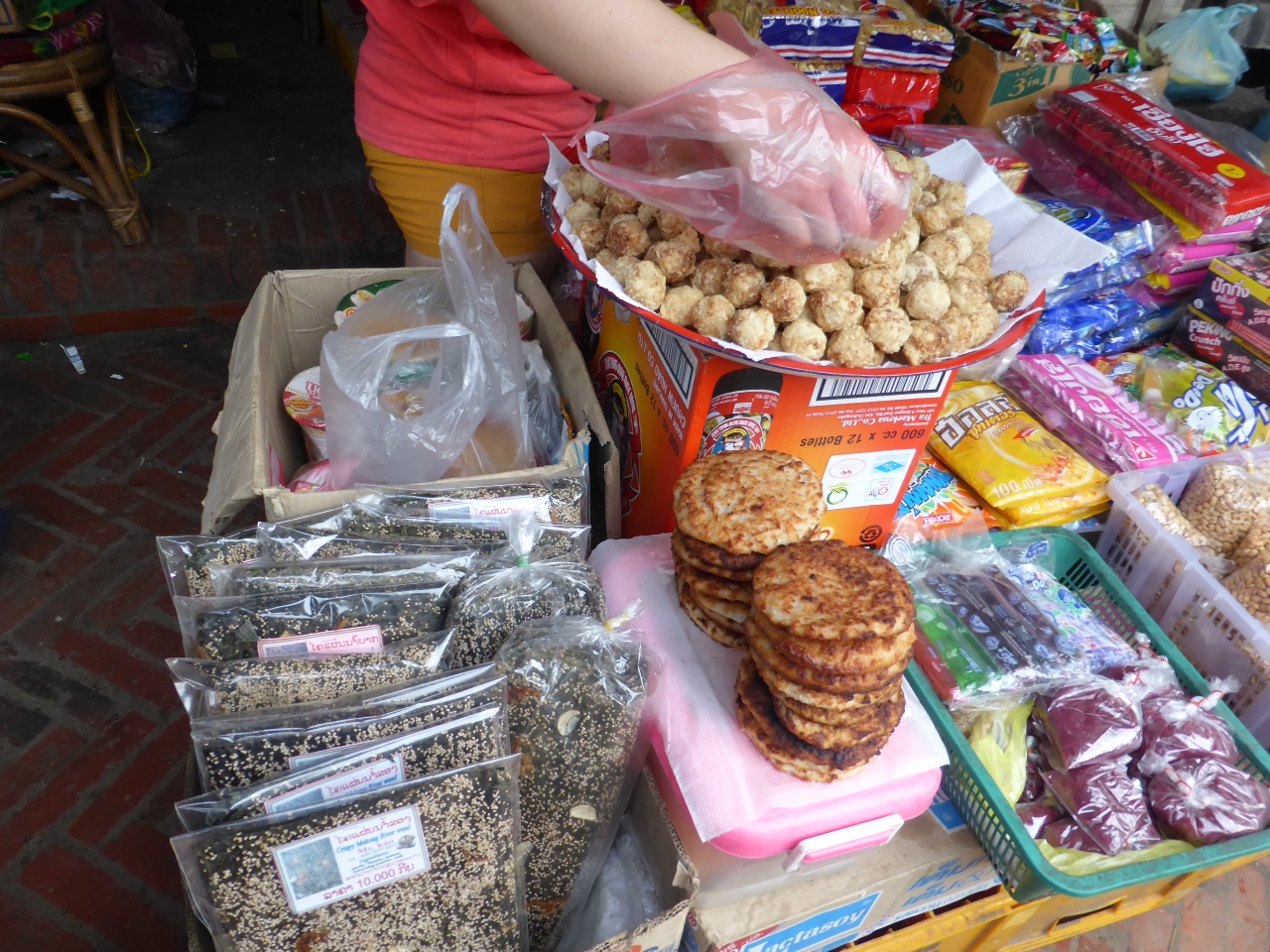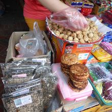 ナイトマーケットは衣料や雑貨など物販店が大半ですが、朝市なら乾物・もち米・お菓子など、チョッとしたお土産になりそうなものも売っていました。