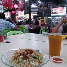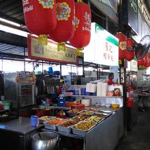 チャイナタウン、Jalan Kebun Sultan沿いにある中華系のフードコートです。中央にイスとテーブルが並んでおり回りがぐるりとお店になっています。ワンタン麺(4RM~)、ナシゴレンではない炒飯(4.5RM~)、ぶっかけ飯(昼のみ)やタイ飯なんかもありました。とにかく種類が多くどれを食べようか迷ってしまいます。飲み物も中国茶(ウーロン茶)0.5RMがあり、もちろん砂糖なしの飲み慣れた味でほっとするうまさです。マレー料理に疲れた時などに超おすすめです。入口付近で売っている揚げあんパン(0.8RM)もおいしかったです。