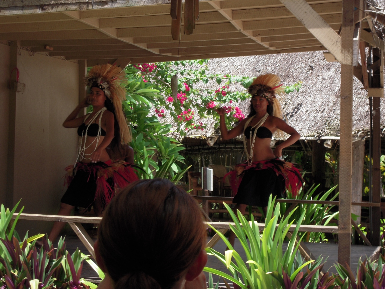 餌づけで観察、バーベキューランチ、フラダンス(全員踊らされた)ショー、