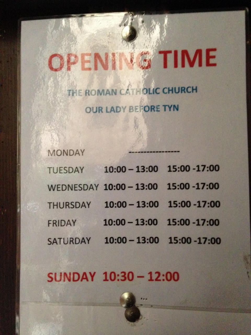 教会自体は大きく側面側からだと目立ちますが入り口がなかなか見つからず(旧市街広場に面した歩道の建物からアクセス)1周以上回って探して着いたら日曜日は12:00で閉まっていましたが柵越しに内部が見れました。旧市街広場周辺の見どころは見つけるのが苦労なものが多かったです。
