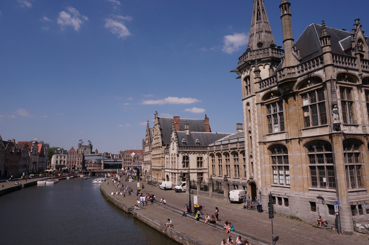 コーンレンレイと同じくギルドハウスの並ぶレイエ川沿いの風景は歴史を感じさせてとても美しいです。川沿いで人々が腰を下ろしたりカフェで休んだりしていて、とても穏やかで静かな雰囲気を楽しむことができるのでぜひおすすめです。