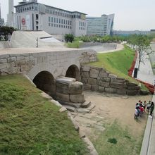 東大門歴史公園の中にある城郭と二間水門(イガンスムン)。