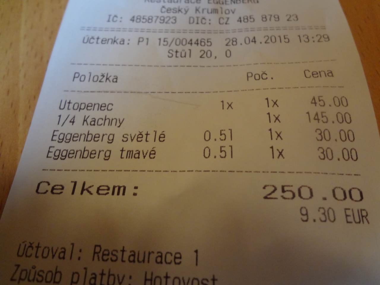 料理自体は普通ですがマァ、チェコの名物料理は一通りあります。