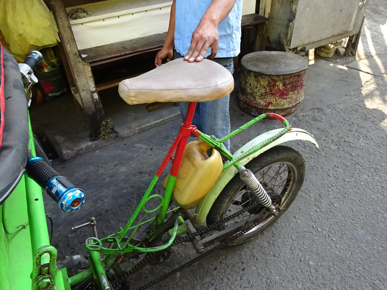 偶然最初に乗ったのはバイクのベチャでした。早い、涼しい、安いの三拍子です。