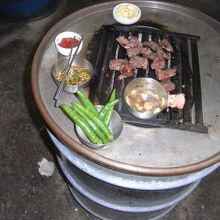 日本でもよく雑誌等に取り上げられるドラム缶焼肉の店。メニューはカルビ一択で、タレにつけていただく。少し硬い部分もあるが、野性味溢れる味でとても美味しい。口、服とも気にしなくても良い予定にしてがっつり楽しみたい。