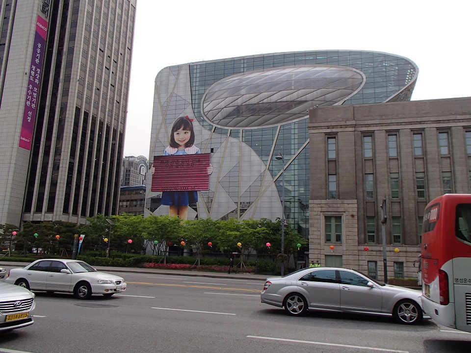 ソウル市庁舎周辺の通りのようでございますが、特別な道路標示などはございませんので外国人観光客にはなじみのない道路と存じます。オフィスビル街でございますので観光名所と呼べるようなものは特にございませんでした。