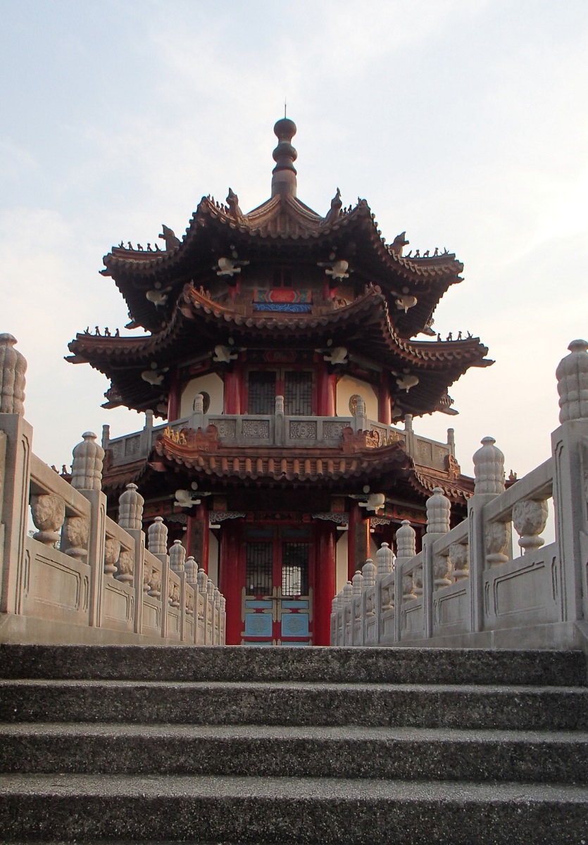池の真ん中にあって、階段と橋でつながっています。中には入れないようですが、廻りを一周できます。といってもそれほど眺めがよいわけでもなく、名前のわりに涼しくもない場所でした。