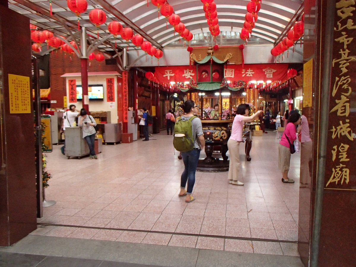 台北市内にある寺院です。ビルの谷間のような所にあるので入り口は狭そうですが、中は奥行きがあります。