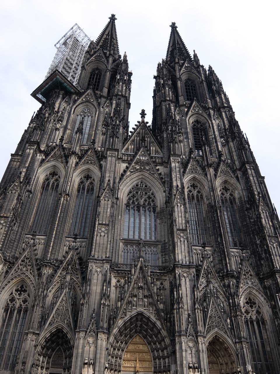 鉄道でケルンへ入り、大聖堂を見学してきました。ケルン中央駅のすぐ近くなので、駅に到着する前から見えます。全体を写真におさめようとしても、大きくて全体は写りません。ドイツにある世界遺産の一つで、中に入るとまず荘厳なステンドグラスが目に飛び込んできます。床のモザイクも本当に美しいです。周辺には、物乞いしている人もちらほらいるので、大聖堂を出て町の中を歩くときには少し注意したほうがいいかもしれません。
