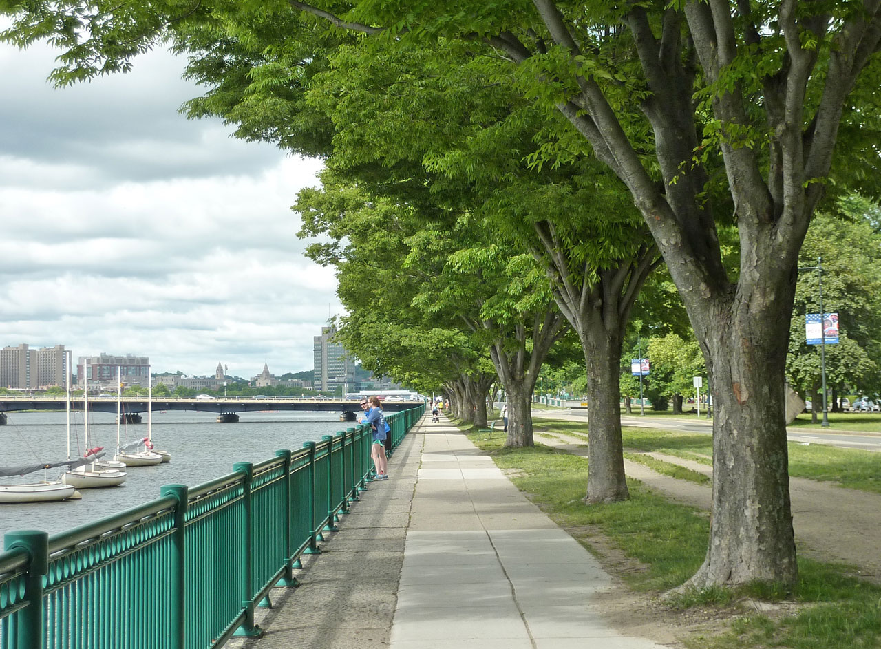 でも帰りの緑の木々の並んだチャールズ川に沿っての散歩は