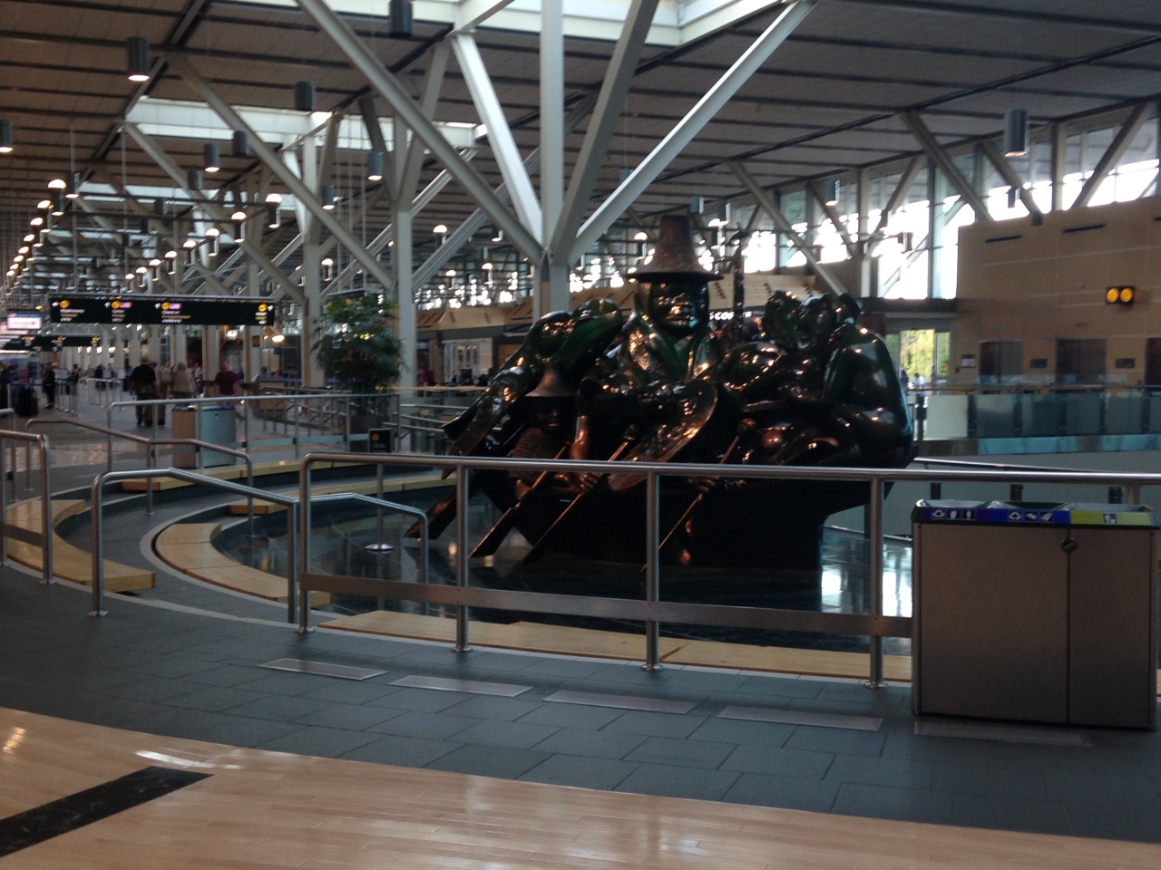 約10年ぶりにバンクーバーの空港を利用しました。バンクーバー市街へ、バスが主とした手段だった以前と違い、スカイトレイン カナダラインが乗り入れて便利になりました。所要時間は30分弱で本数も多いので、アクセス面で大幅に向上しました。ターミナルは大きく3つに分かれ、カナダ国内線・国際線・USA行にわかれます。USA行のチェックインカウンター側にフェアモントホテルがあり、また国内線ターミナルのLevel1にはセブンイレブンがありました。