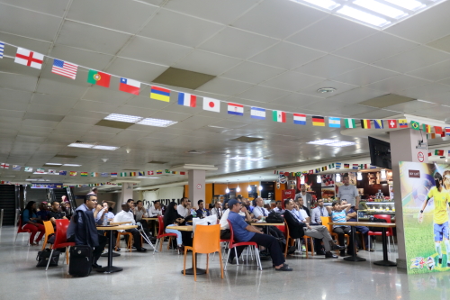 食堂が集まるフロアのテレビで、みんなでワールドカップを見ていました。